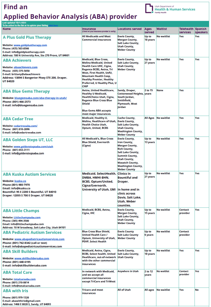 In addition to autism-specific therapy (ABA), your child may also benefit from other developmental supports and resources. Talk with your pediatrician to see if your child needs any additional supports. Contact your local Early Intervention program to have your child evaluated and see what resources may be available to you. Most Early Intervention programs are free and run by the state and/or local governments.