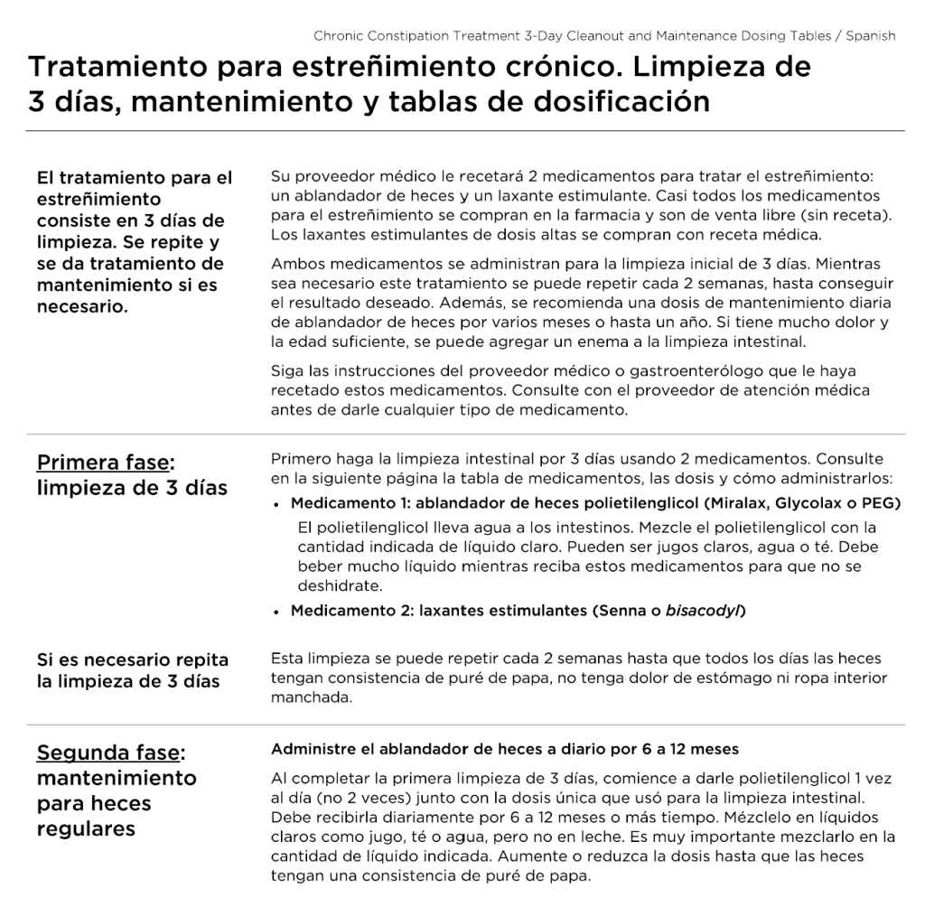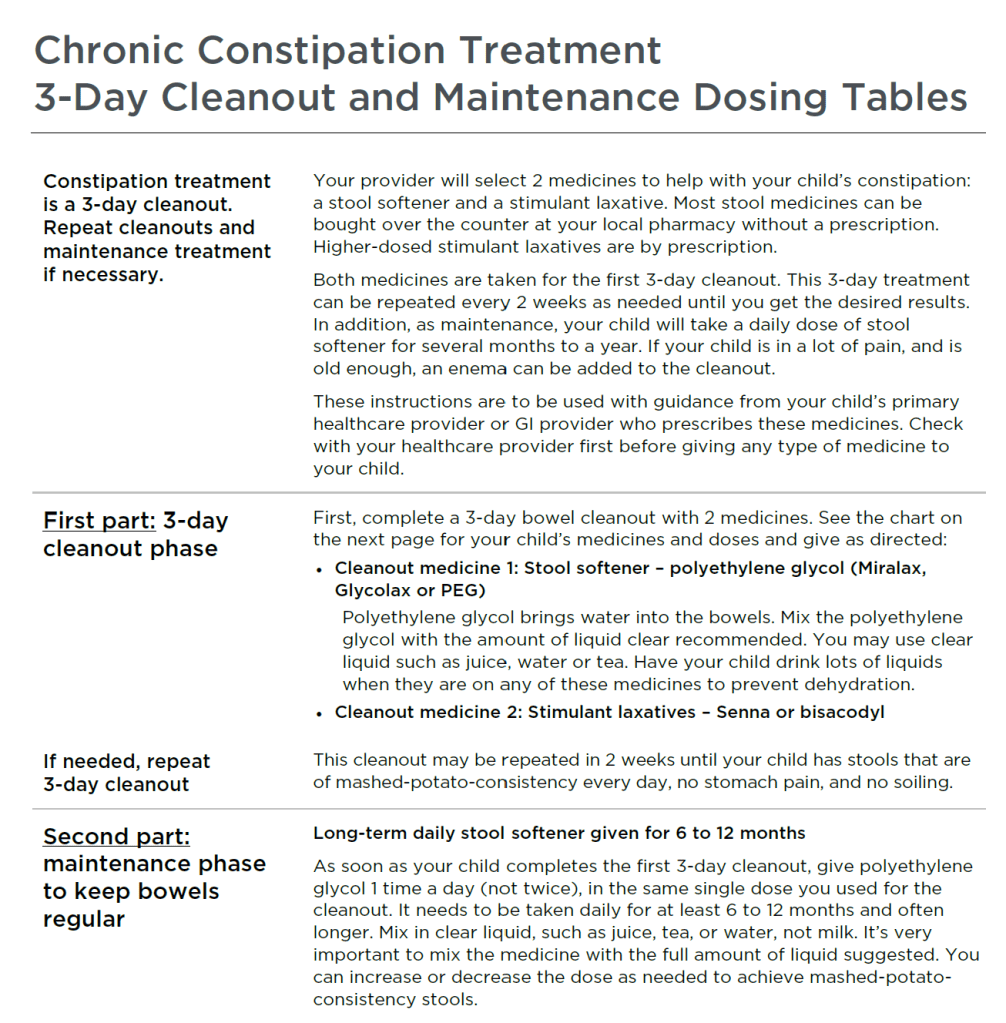 I like to use the Seattle Children’s 3 Day Cleanout and Maintenance Instructions