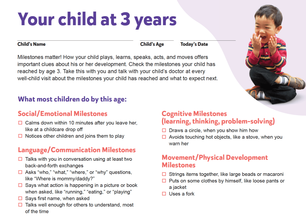 (Photo credit CDC Milestones by 3 Years)